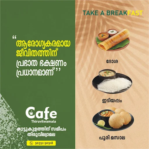 Managed by Anamala Homestays and owned by Thiruvilwamala Grama Panchayath & the Department of Tourism, Govt. of Kerala, Take A Break is a refreshing, traveler-friendly space designed for relaxation and great food. Whether you're exploring the region or looking for a cozy cafe in Kerala, our welcoming ambience and delightful menu make us the perfect stop for families, tourists, and locals alike. Located conveniently between major towns, Take A Break is also a preferred choice for anyone searching for a quality cafe in Palakkad or a soothing café experience near Thrissur.