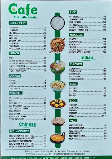 At Take A Break, indulge in the authentic flavours of Kerala cuisine, paired with a wide variety of Indo-Chinese and South Indian specialties. Our signature Rawther Biriyani crafted with aromatic spices and time-honored techniques is a highlight you won’t want to miss. Complement your meal with refreshing beverages, freshly prepared snacks, and finish with our delightful ice creams and faloodas. Whether you're discovering local tastes or simply exploring new flavours at a popular cafe in Thrissur, our diverse menu has something for every palate.